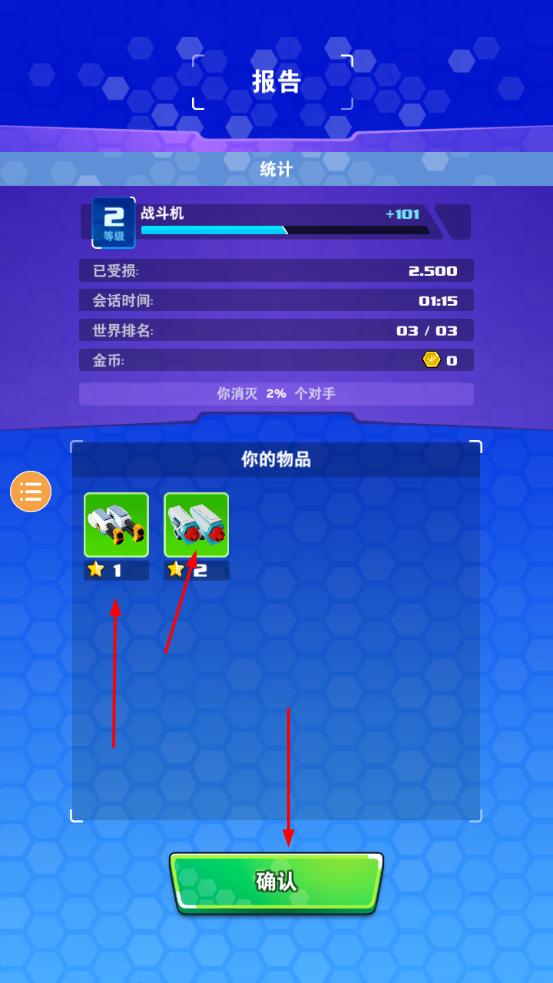 4、每局游戲結(jié)束后,會生成包含等級、受損情況、會話時間、世界排名、金幣及消滅對手比例等信息的報告。