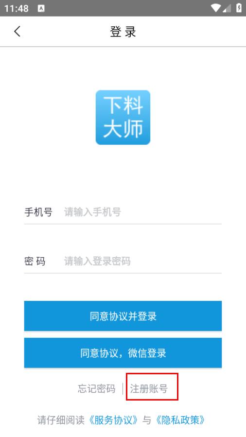 3、在登錄頁面,點(diǎn)擊下方的注冊賬號,進(jìn)入注冊頁面。