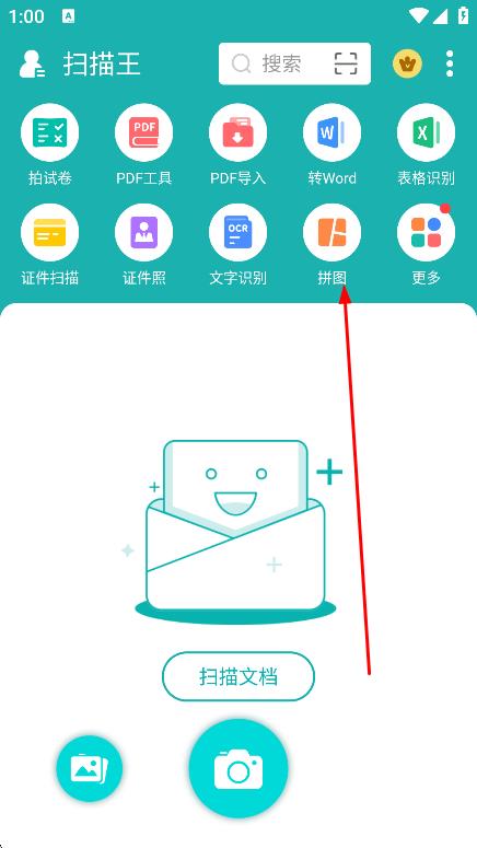 1、在掃描王主界面,點(diǎn)擊拼圖,進(jìn)入選擇文件頁(yè)面。