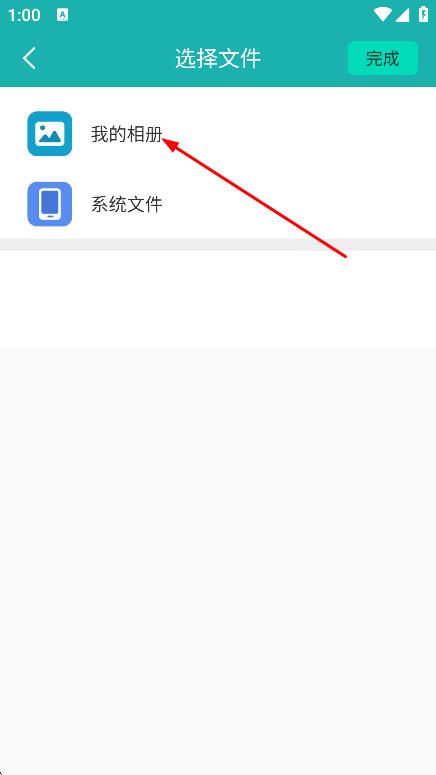 2、在選擇文件頁(yè)面,點(diǎn)擊我的相冊(cè),進(jìn)入相冊(cè)選擇圖片頁(yè)面。