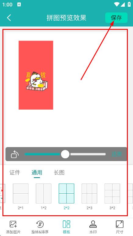 4、在拼圖預(yù)覽效果頁(yè)面,調(diào)整拼圖參數(shù)后,點(diǎn)擊保存,保存拼圖。
