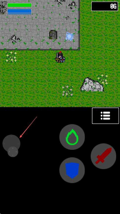 2、通過左下角虛擬搖桿移動角色探索城堡廢墟周邊收集資源。