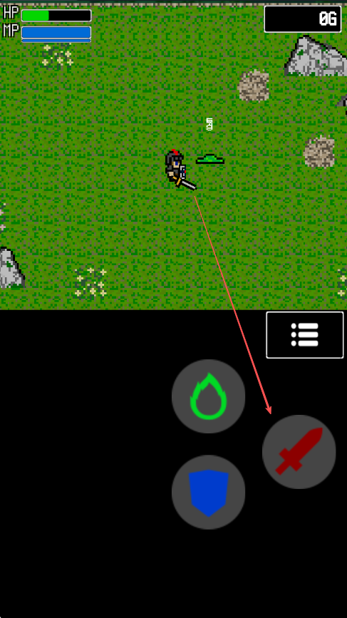 4、按照紅色箭頭指示,點(diǎn)擊右下角紅色劍形按鈕進(jìn)行攻擊。