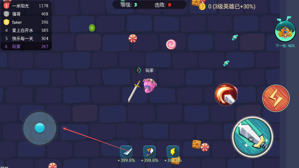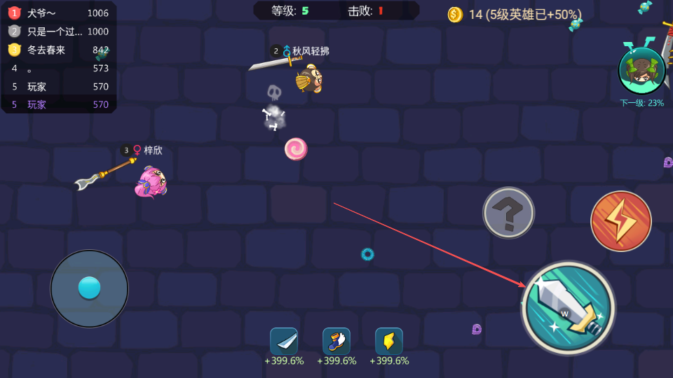 2、遇到其他玩家角色時(shí),利用走位躲避攻擊,同時(shí)靠近對(duì)手攻擊。