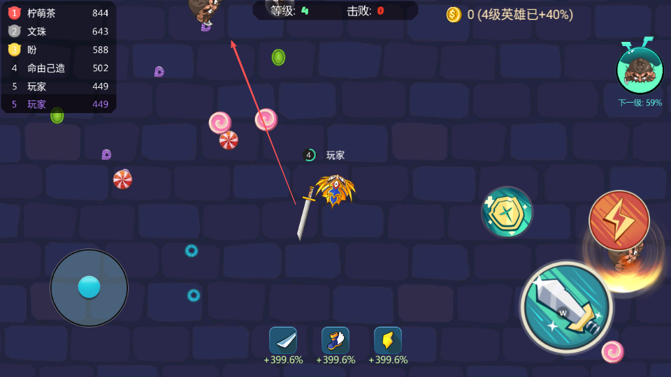 1、低門(mén)檻易上手操作:采用單指滑動(dòng)的操作方式,無(wú)需復(fù)雜按鍵組合,新手玩家短時(shí)間內(nèi)即可掌握移動(dòng)、攻擊與收集能量的核心操作,快速融入對(duì)戰(zhàn)節(jié)奏。