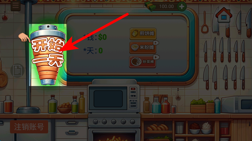 2、進入店鋪后,找到開始一天的標(biāo)識并點擊,正式開啟當(dāng)天的經(jīng)營,此時會進入接待顧客、制作美食的流程,開始一天的營業(yè)。