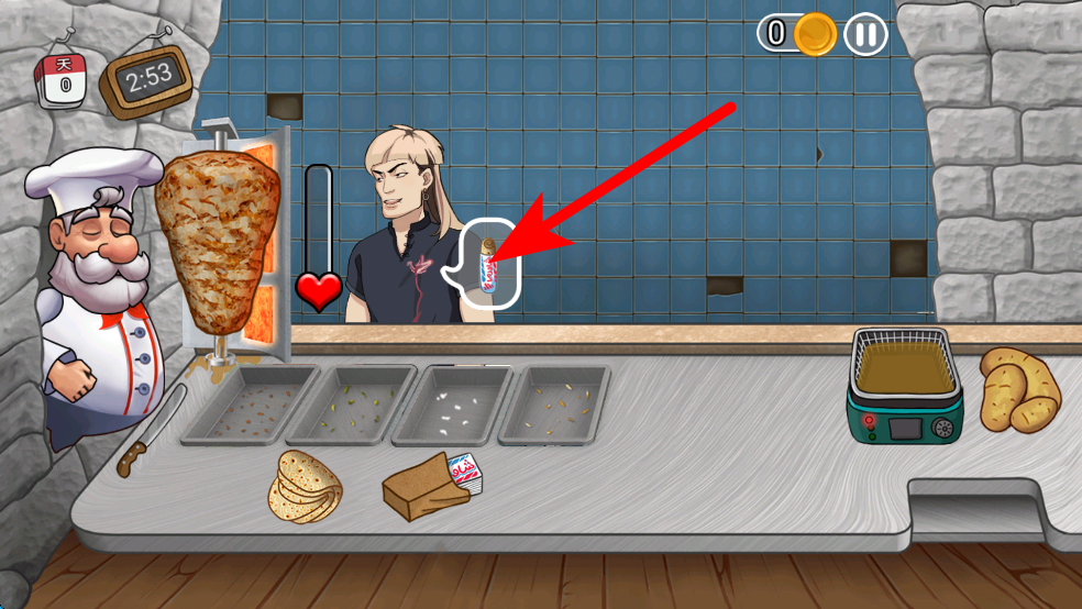 3、當(dāng)有顧客來到店內(nèi),會顯示出顧客需要的美食,根據(jù)顧客的需求,在店內(nèi)找到對應(yīng)的食材或制作工具,制作出顧客需要的美食,滿足顧客的需求。