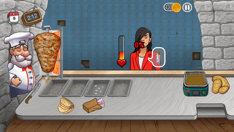 2、音效反饋設(shè)計:游戲切肉聲油炸聲收銀機叮咚聲構(gòu)成ASMR音效鏈,配合顧客咀嚼時的幸福表情變化,形成多維度感官正反饋循環(huán)。