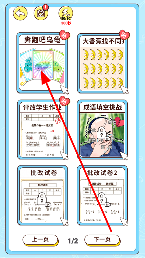 1、進入游戲后,選擇不同的玩法,如各類趣味挑戰(zhàn)玩法,挑選自己感興趣的玩法,開啟如奔跑吧烏龜游戲體驗,獲取更多樂趣。