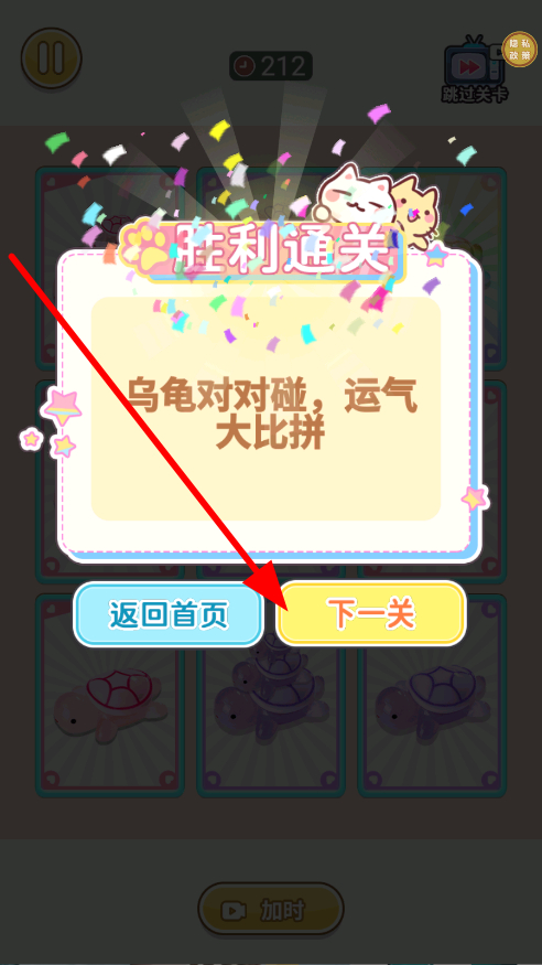 4、玩家體驗成功通關(guān)后,可以選擇進入下一關(guān)繼續(xù)游玩挑戰(zhàn),持續(xù)不斷的體驗新的關(guān)卡內(nèi)容,感受持續(xù)的游戲樂趣滋味。