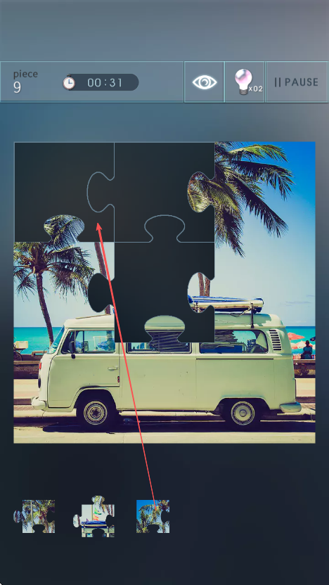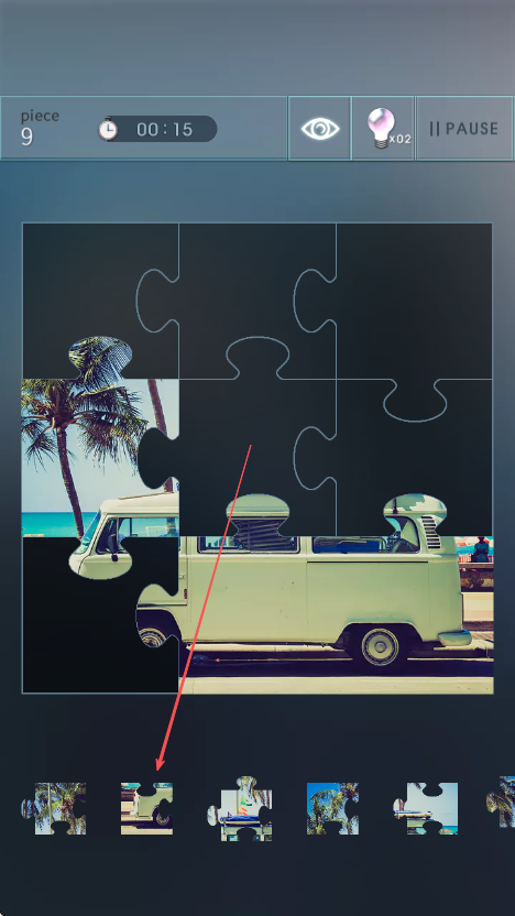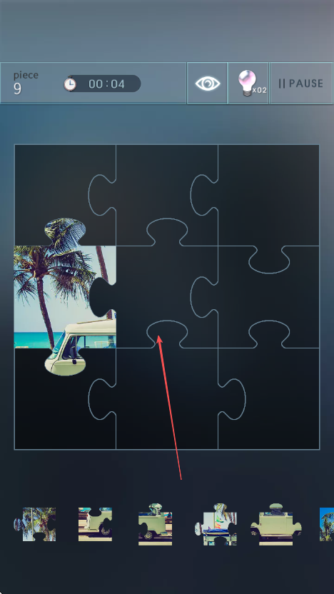 1、進(jìn)入游戲查看piece9和計(jì)時(shí)表,從下方拼圖塊中找出邊緣明顯的塊,拖到拼圖板對(duì)應(yīng)位置。