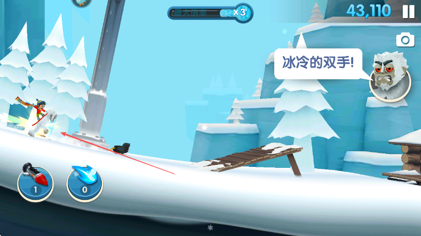 3、看到企鵝時(shí)靠近并抓住它們,注意下方道具欄,適時(shí)使用道具。