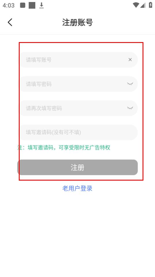 4、在注冊(cè)賬號(hào)頁面,填寫信息,然后點(diǎn)擊注冊(cè)即可完成注冊(cè)操作。