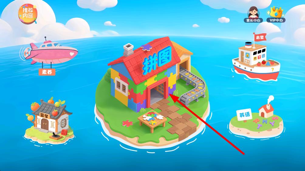 1、進(jìn)入游戲主界面,能看到多個內(nèi)容板塊,點(diǎn)擊中間標(biāo)有拼圖字樣的房屋建筑,進(jìn)入拼圖游戲的選擇頁面,挑選喜歡的拼圖內(nèi)容。