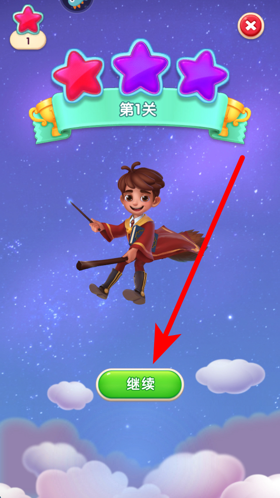 3、當(dāng)成功完成當(dāng)前關(guān)卡的消除任務(wù),收集到足夠目標(biāo)后,會(huì)出現(xiàn)通關(guān)提示,此時(shí)可點(diǎn)擊“繼續(xù)”,進(jìn)入新的關(guān)卡,挑戰(zhàn)更復(fù)雜的消除任務(wù)。