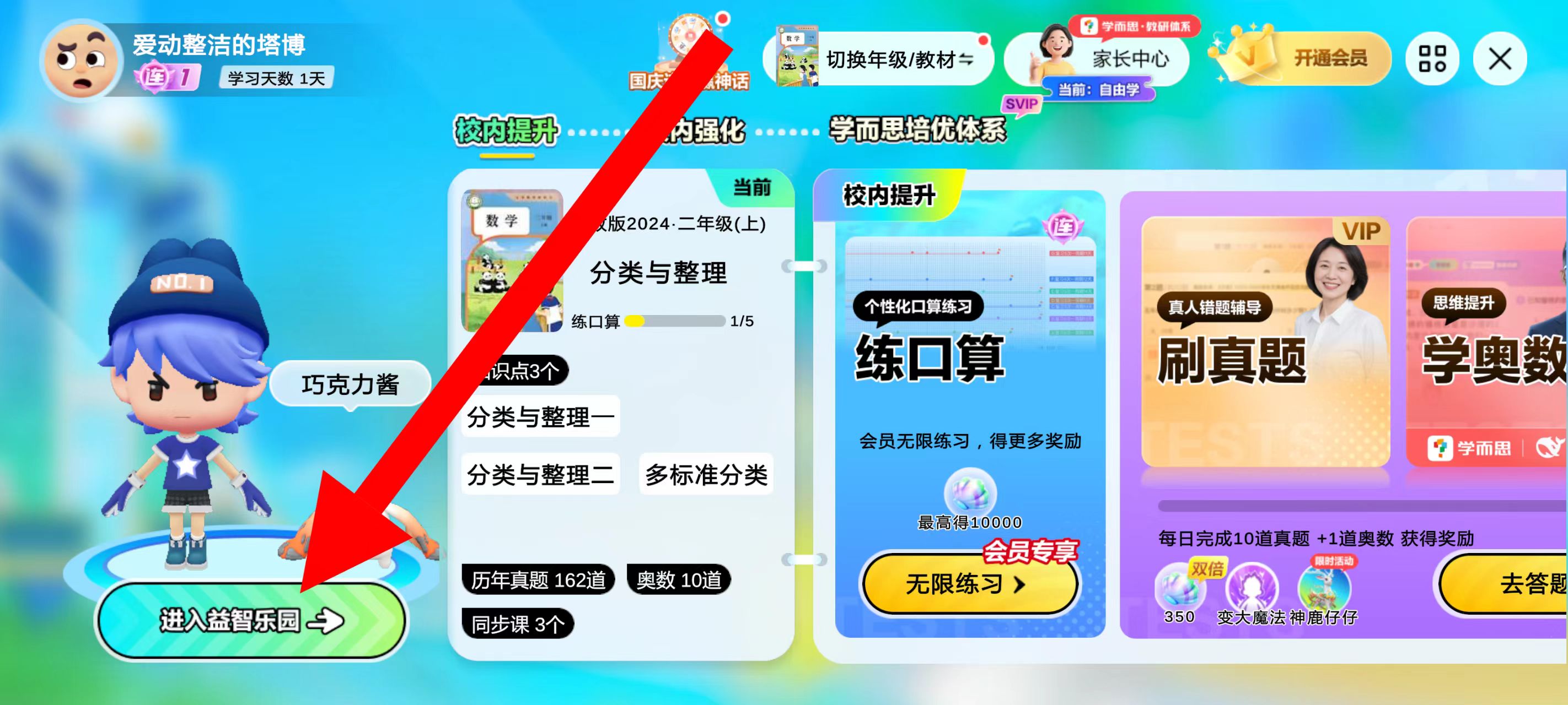 2、進(jìn)入益智樂園界面后,選擇口算樂園學(xué)習(xí)板塊。