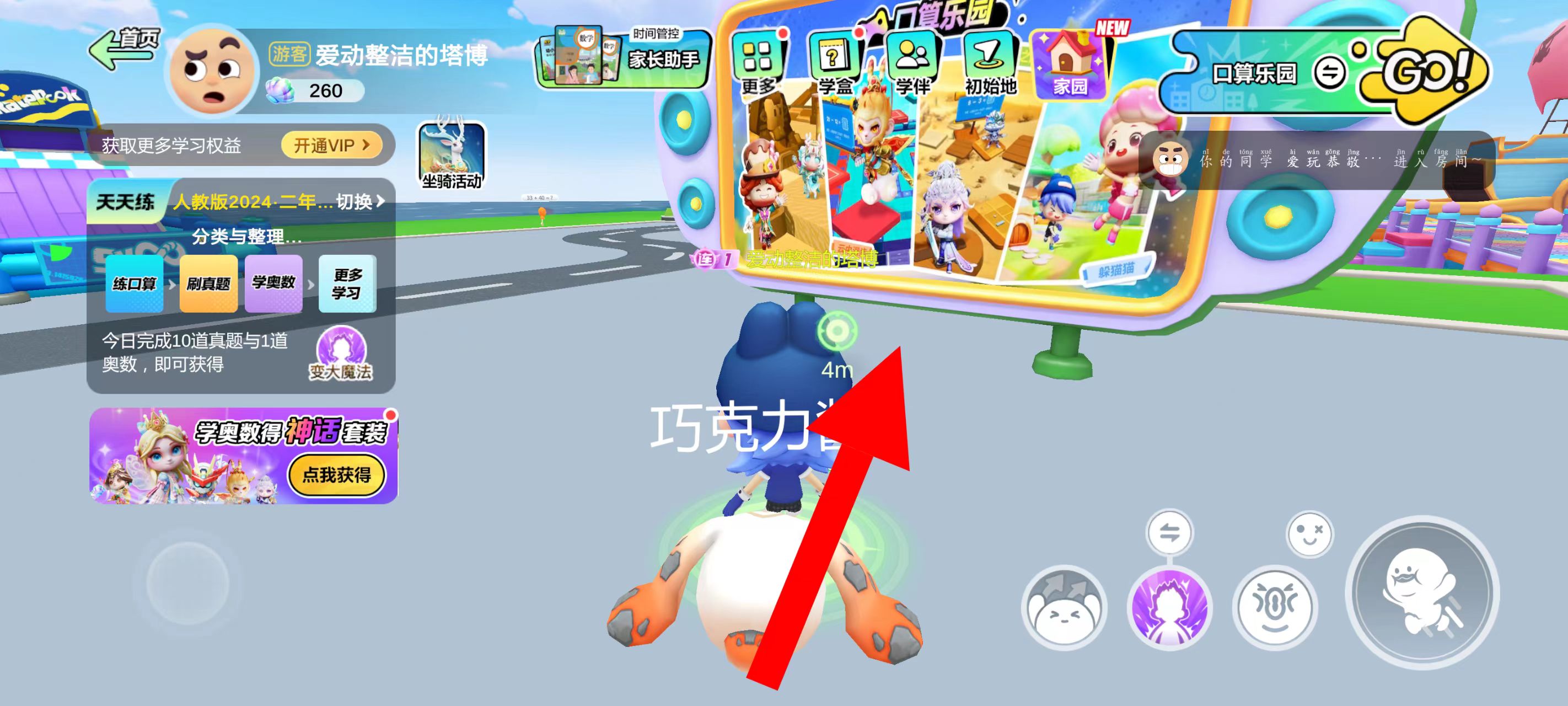 1、打開數(shù)學(xué)天天練APP,在首頁點(diǎn)擊進(jìn)入益智樂園按鈕。