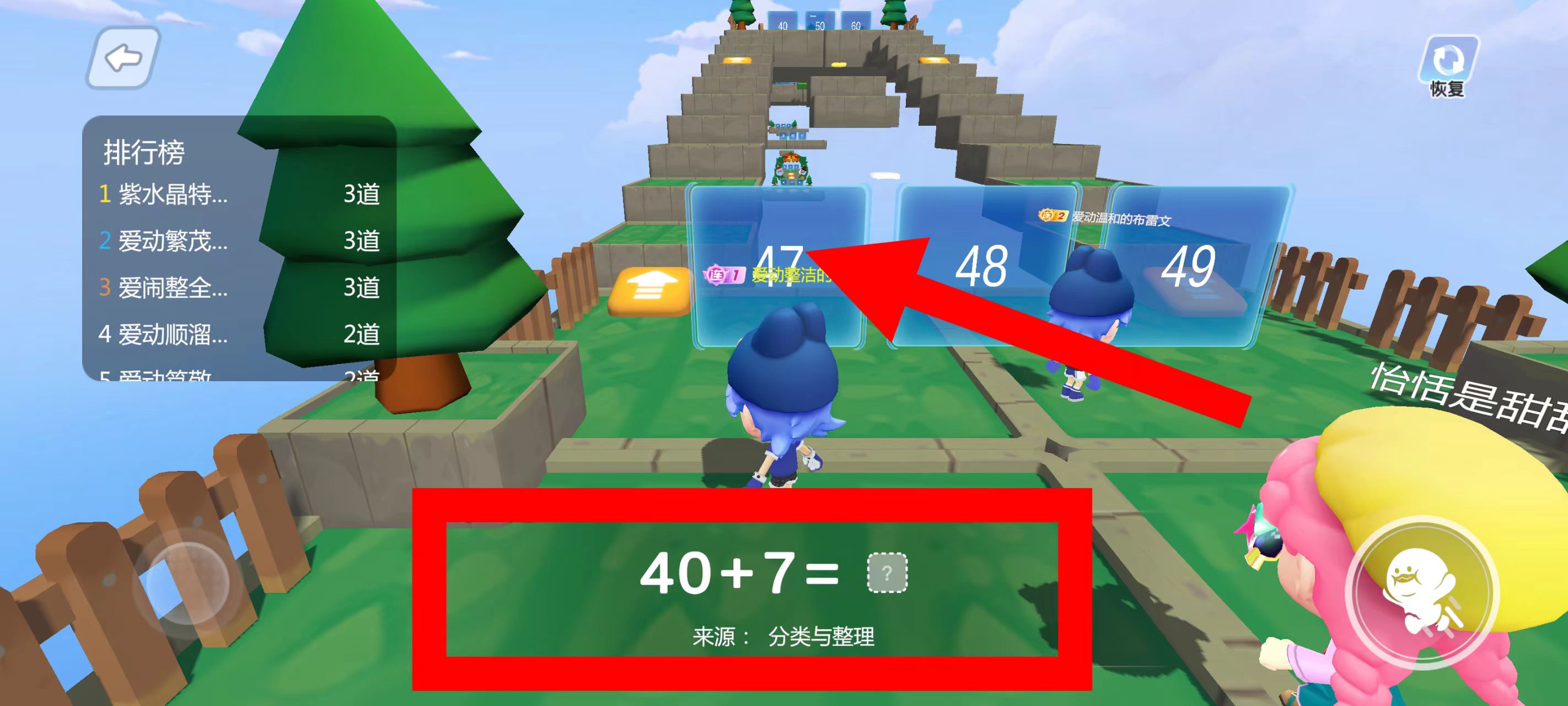 3、在游戲場景中,會出現(xiàn)數(shù)學(xué)題目,選擇或輸入答案進(jìn)行答題。