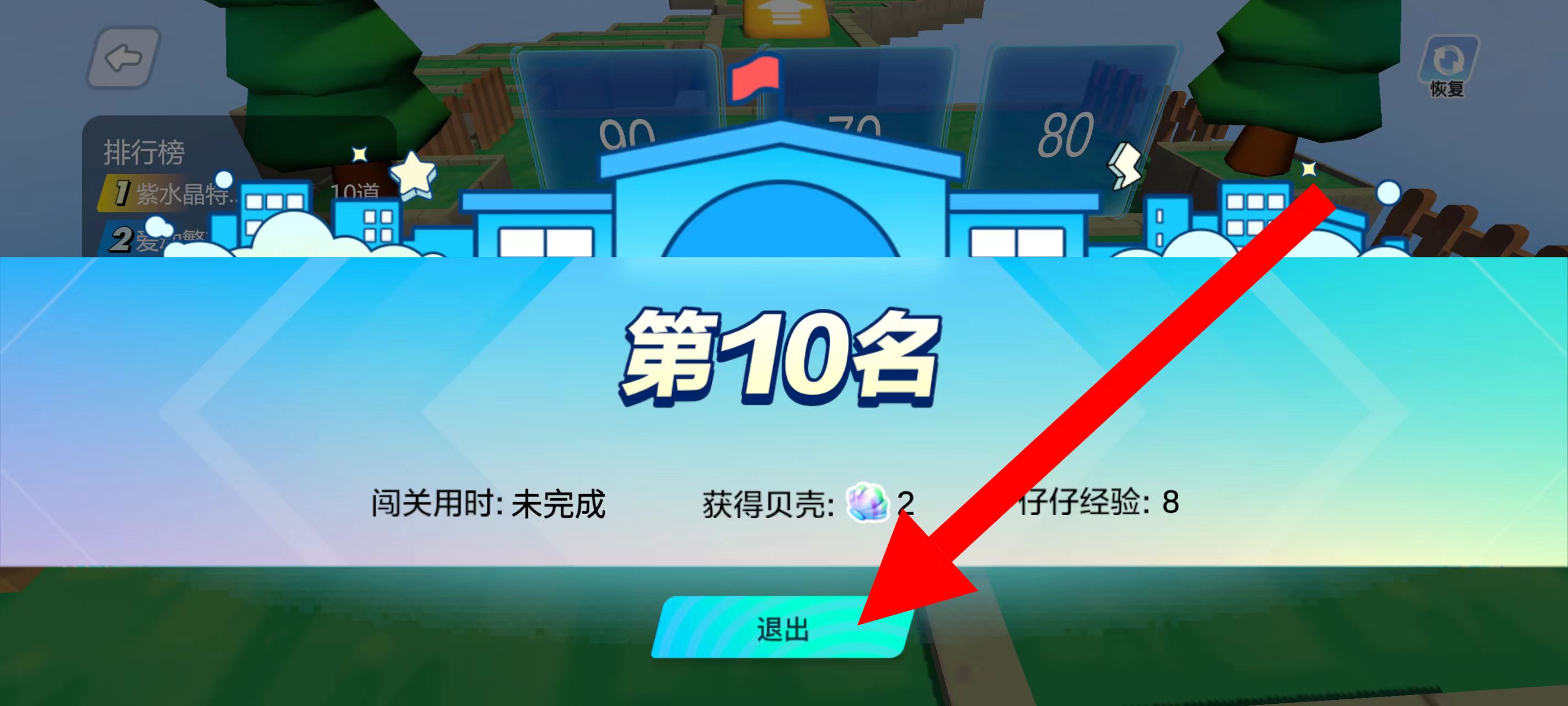 4、完成答題后,查看排名和獎(jiǎng)勵(lì)情況,點(diǎn)擊退出按鈕返回其他界面。