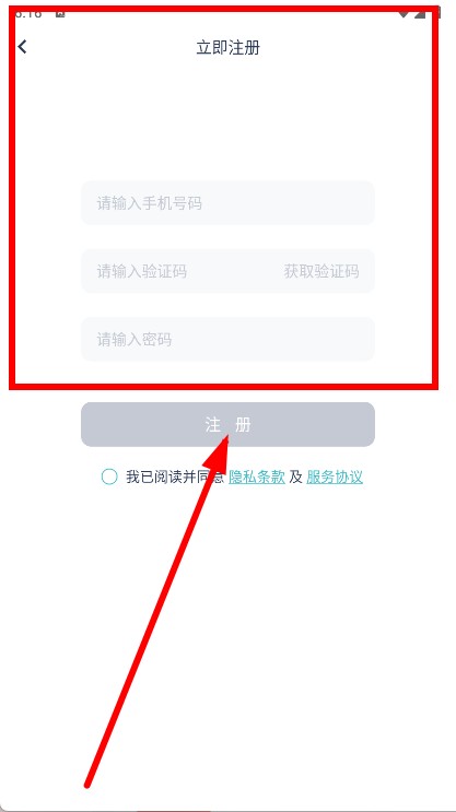 4、輸入手機(jī)號(hào)碼、驗(yàn)證碼、密碼,勾選同意后,點(diǎn)擊注冊(cè)按鈕,完成注冊(cè)。