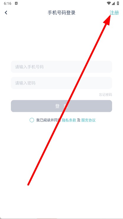 3、進(jìn)入手機(jī)號(hào)碼登錄頁(yè)面后,點(diǎn)擊右上角的注冊(cè)。