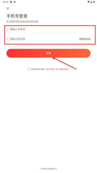 4、輸入手機號碼和驗證碼,點擊登錄按鈕,完成賬號登錄操作。