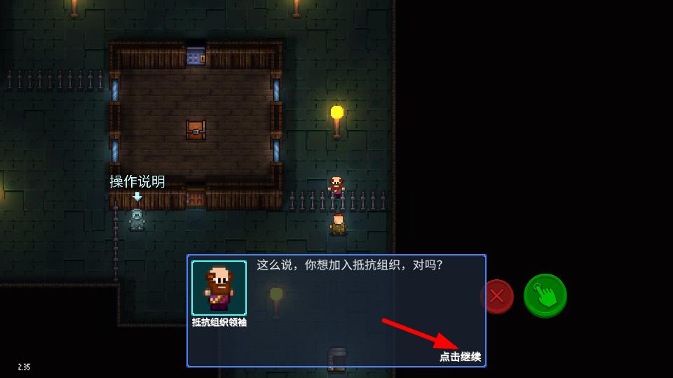 1、點(diǎn)擊點(diǎn)擊繼續(xù)的按鍵,可以繼續(xù)的與抵抗組織領(lǐng)袖的對(duì)話,進(jìn)入加入抵抗組織的流程。