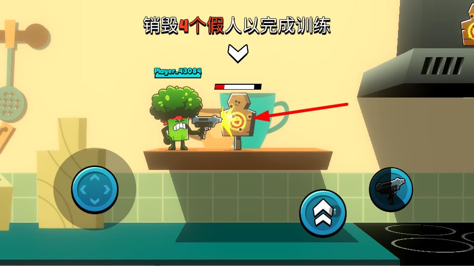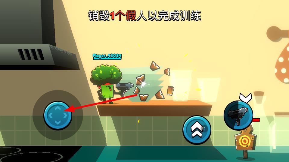 3、點擊左側(cè)移動按鍵,可控制角色在場景中移動,調(diào)整射擊位置,以便銷毀剩余假人。