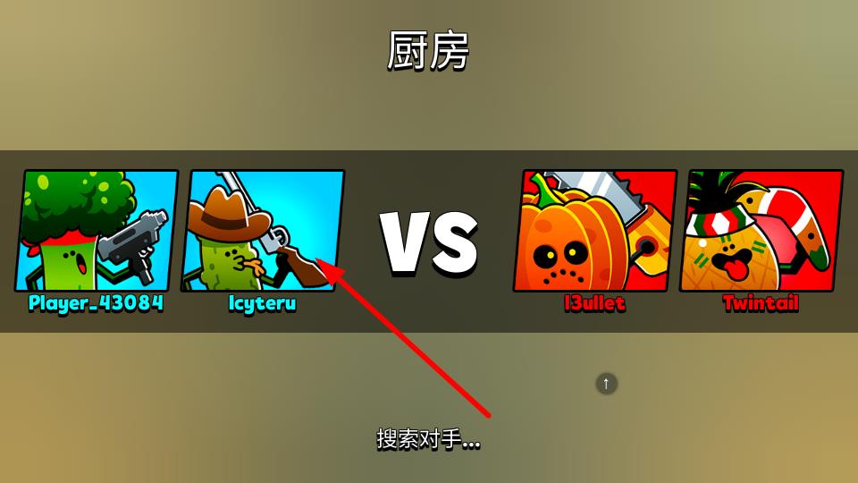 4、等待搜索對手完成,可進入與其他玩家的對戰(zhàn)模式,在廚房場景中展開射擊競技。