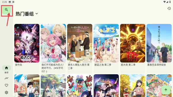 1、打開動漫類應用,點擊左上角搜索圖標,進入搜索頁面。