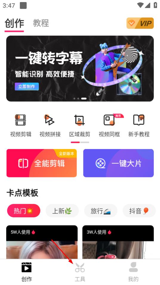 1、進(jìn)入愛剪輯,若要使用工具功能,可點(diǎn)擊頁面下方的工具按鈕。
