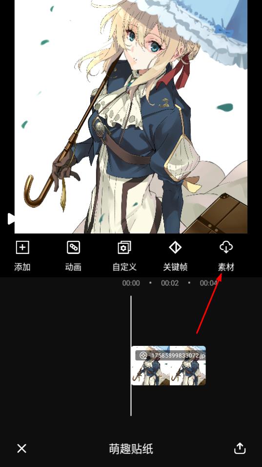 4、進(jìn)入編輯頁面,想要添加更多素材,可點(diǎn)擊素材按鈕。