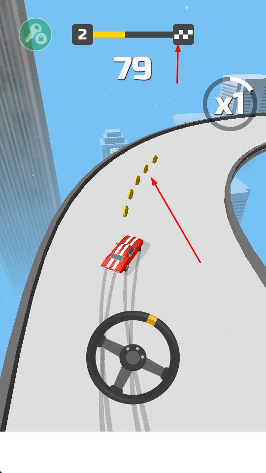 1、操控方向盤,控制賽車在高空賽道行駛,通過調(diào)整方向避開賽道邊緣,保持賽車穩(wěn)定前進。