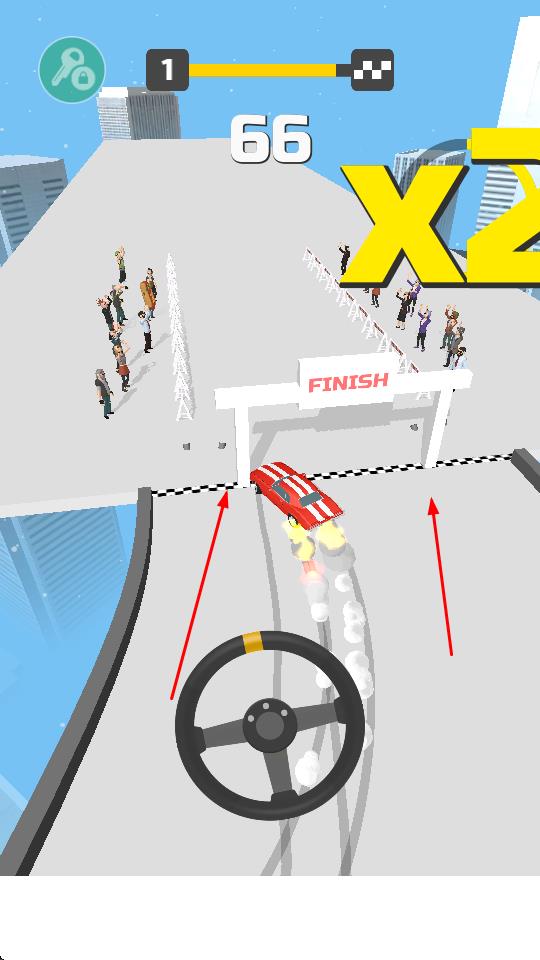 3、駕駛賽車沖向終點FINISH,抵達終點可完成關(guān)卡,獲取相應(yīng)獎勵。