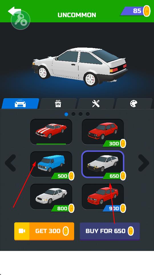 4、進入車輛選擇界面,花費金幣購買心儀的車輛,不同車輛可能具備不同性能。