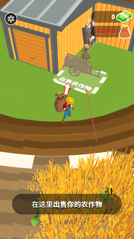 4、當背包農作物數(shù)量達到60后,將背包運到指定區(qū)域出售農作物處,出售農作物獲取獎勵。
