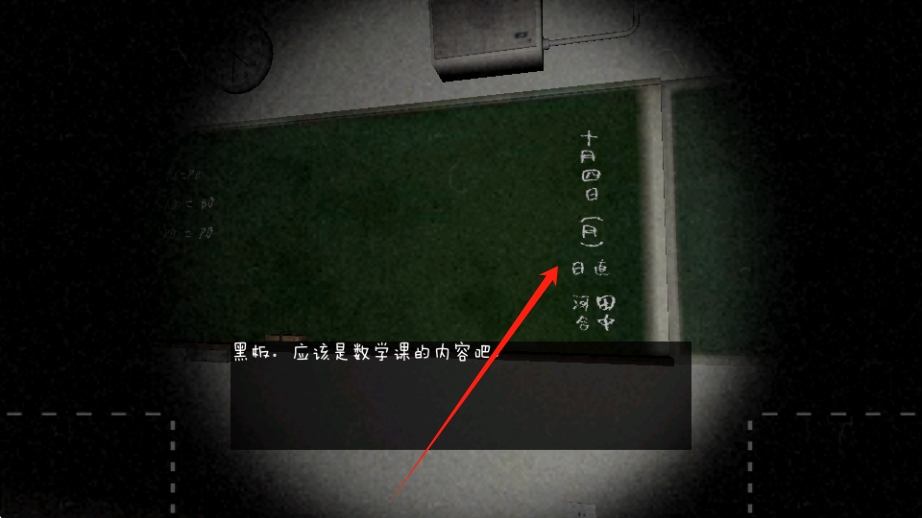 3、觀察箭頭指向的黑板內(nèi)容,可獲取時間、地點(diǎn)等關(guān)鍵線索,為了解謎來提供方向。