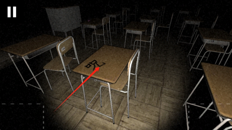 4、調(diào)查箭頭指向的帶有咒字的課桌,觸發(fā)隱藏事件或獲取解謎道具,提升探索深度。