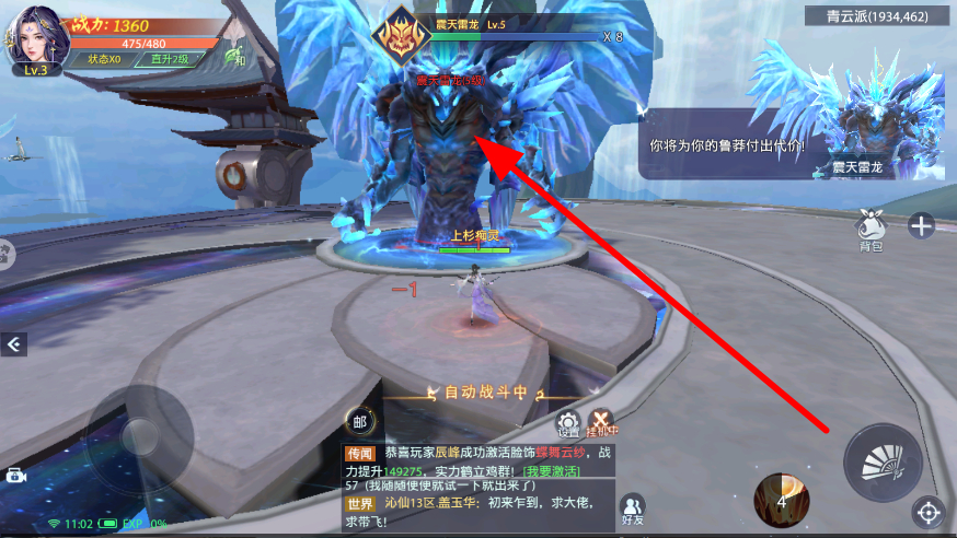 3、任務(wù)遇到強大的怪物,擊敗震天雷龍等,與這些怪物展開戰(zhàn)斗,運用技能和策略,擊敗怪物,獲取戰(zhàn)斗獎勵,提升自身戰(zhàn)力。
