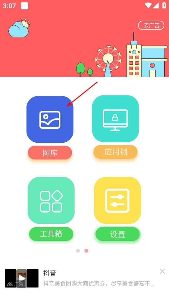 1、打開鎖屏大全,點(diǎn)擊首頁的圖庫,進(jìn)入圖庫頁面。