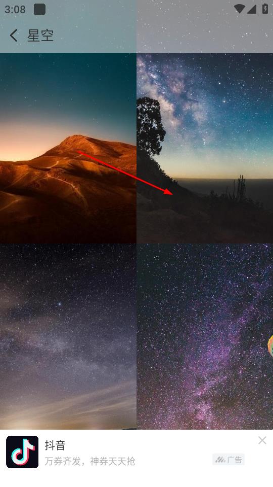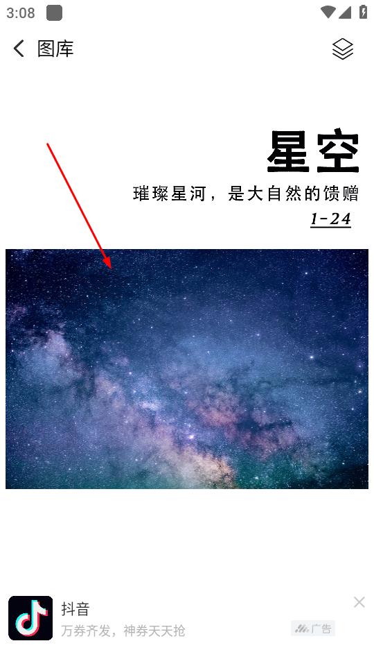2、在圖庫頁面,點(diǎn)擊星空相關(guān)內(nèi)容,進(jìn)入星空圖片展示頁面。
