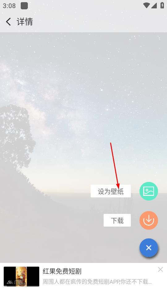 4、在圖片詳情頁,點(diǎn)擊設(shè)為壁紙,將該圖片設(shè)為壁紙。