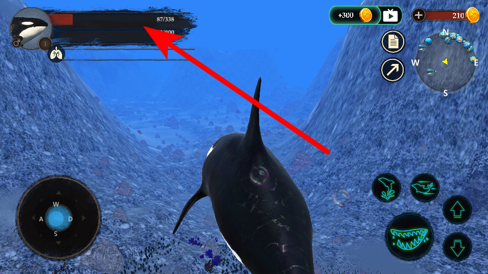 2、多重成長系統(tǒng):從幼鯨成長為族群領(lǐng)袖,通過捕食獲得經(jīng)驗解鎖新技能,提升游泳速度攻擊力等屬性,逐步掌握頂級掠食者的生存技巧。