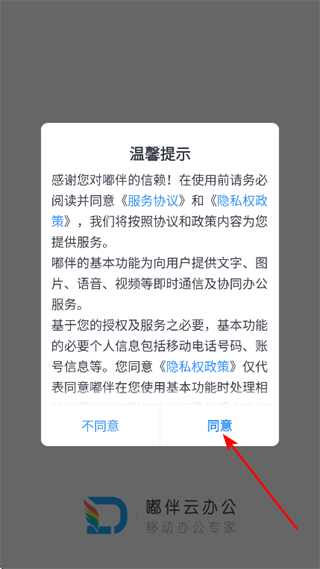 1、在溫馨提示彈窗中,點(diǎn)擊同意,進(jìn)入注冊(cè)登錄頁(yè)面。