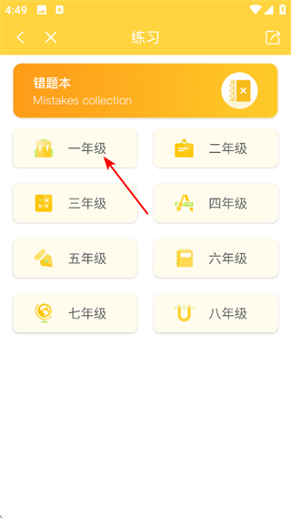 2、在練習(xí)頁面,點(diǎn)擊一年級,進(jìn)入一年級課本選擇頁面。