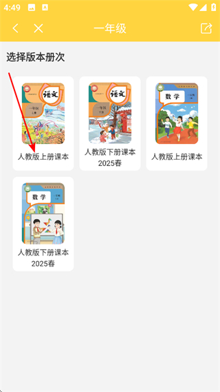 3、在一年級課本選擇頁面,選擇要學(xué)習(xí)的課本,如人教版上冊課本。