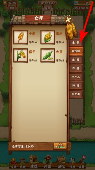 4、除耕種外,還能在倉(cāng)庫(kù)界面看到其他的作物,果園可種植水果,養(yǎng)殖,水產(chǎn)品等,豐富小院產(chǎn)出。