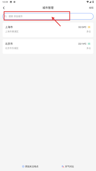 2、點擊城市搜索頁面的搜索框,輸入選擇城市。