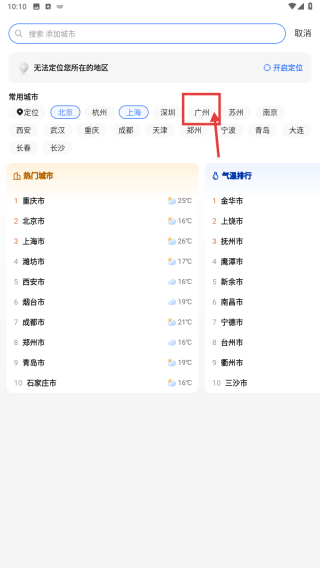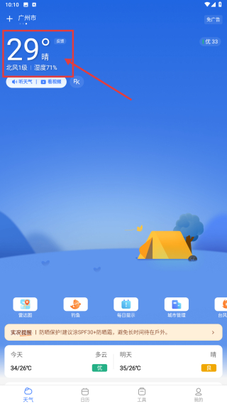3、點擊廣州天氣頁面,查看溫度、天氣狀況等基礎信息。