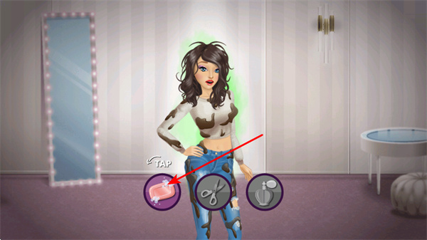 1、點擊肥皂圖標對角色臟污衣物進行清潔,外觀變得整潔,打造角色形象初始步驟。